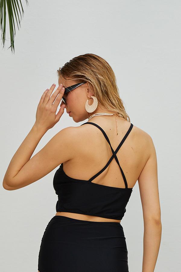 Starinci büzgülü model bikini üstü Polyamid kumaştan üretilmiştir. İçi astarlıdır.