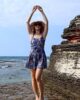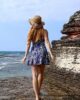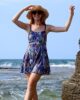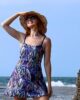 Kadın Lacivert Şortlu Elbise Mayo Gölgeli Yapraklar