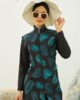 Hızlı Kuruyan Tam Kapalı Tesettür Mayo Siyah Yeşil Yapraklı