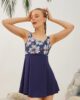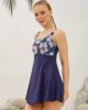 Şortlu Elbiseli Mayo Modeli Lacivert Gül Desenli