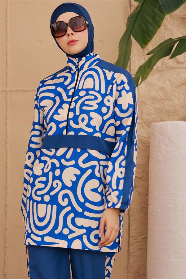 Klasik Düz Desensiz Hızlı Kuruyan İndigo Tesettür Mayo