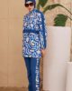 Starinci Yarım Kol Tesettür Mayo Lacivert Kısakol Yaprak Desenli