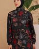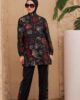 Tam Kapalı Dik Yaka Tesettür Mayo Siyah Örüntülü Desen