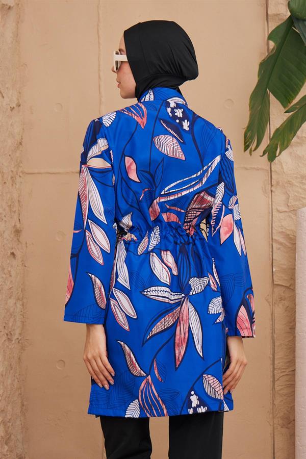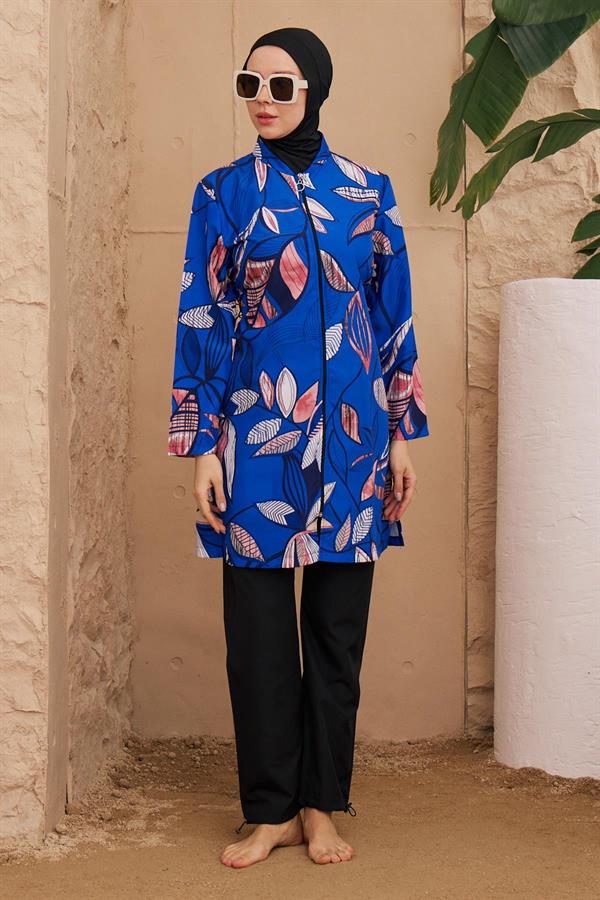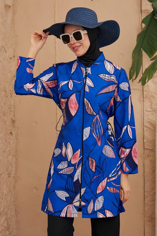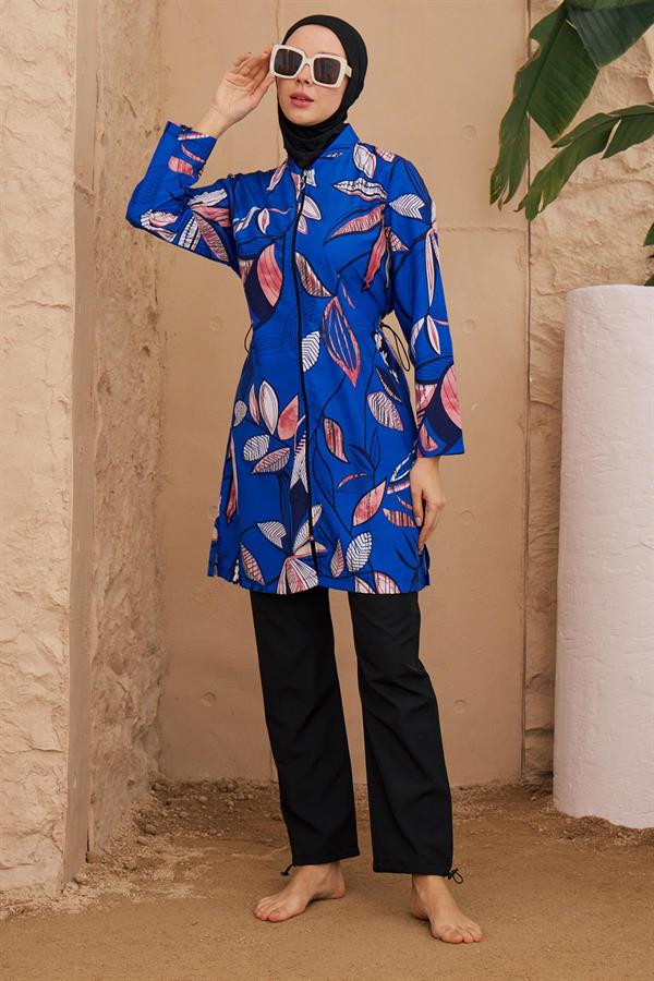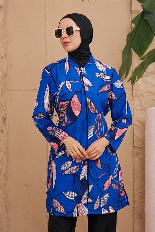 Starinci Büyük Beden Kadın Tesettür Mayo Yaprak Desenler Likra Kollu