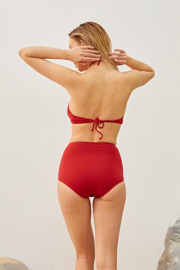 Yüksek Bel Toparlayıcı Bikini Takımı Kırmızı
